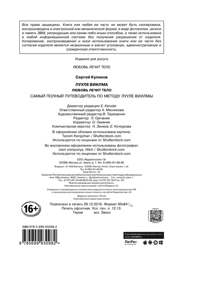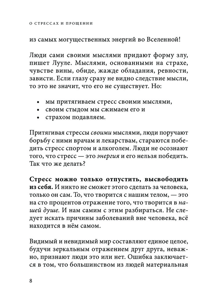 💳 Оплатить за товар можно при получении 🇰🇿 Есть бесплатная доставка по Казахстану от 1 дня 🎁 Копите бонусы с каждой покупки Серия: Любовь лечит тело Со стрессами можно разговаривать, как с людьми. И если человек научится «высвобождать» стрессы, то болезнь отступает. К такому выводу пришла эстонский врач — Лууле Виилма, которая за свою жизнь написала множество бесценных книг и помогла сотням тысяч людей выздороветь, обрести счастье, по-новому понять и почувствовать свой организм. |