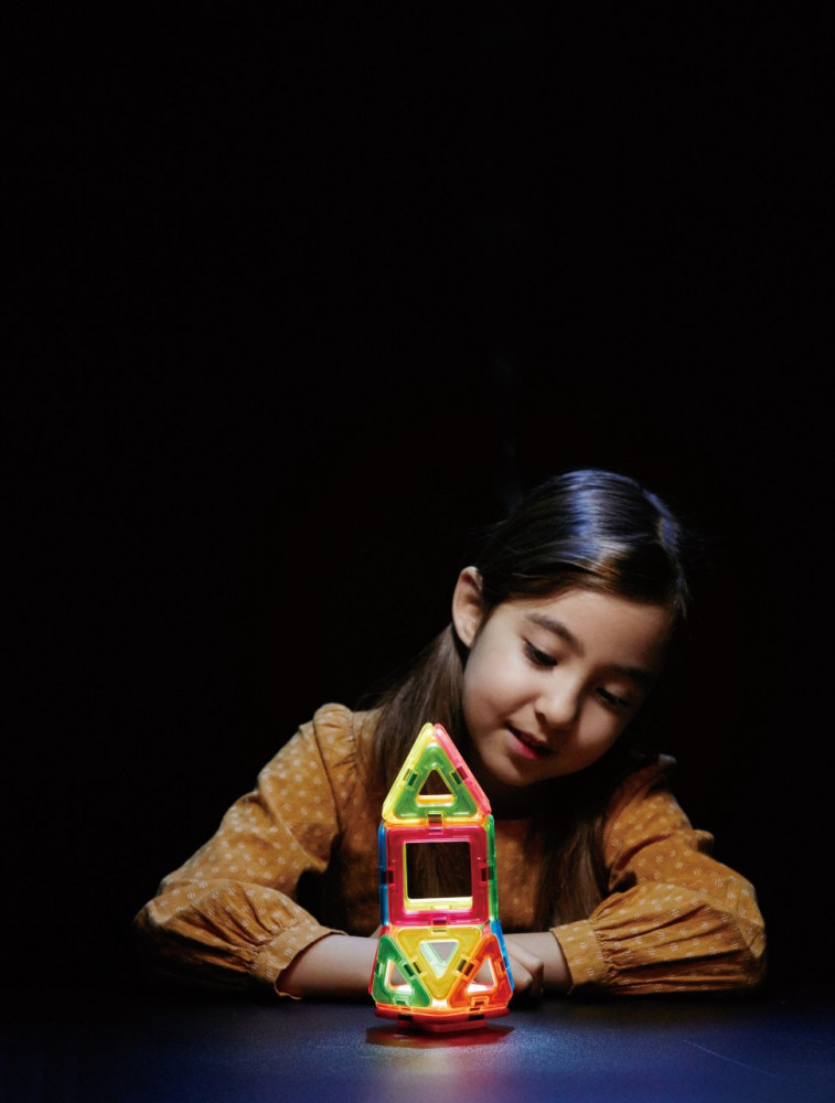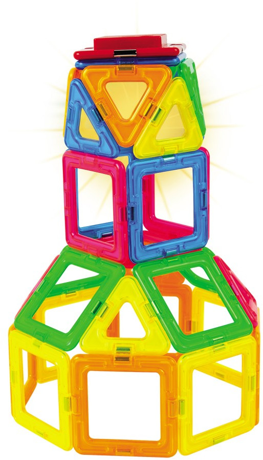 Конструктор качественный. Магниты крепкие. Яркие цвета. Светящийся элемент детям нравится, в темноте детям интересно. Придумывают разные модели из конструктора, светящиеся фонари, маяк "щенячего патруля"😊. Так что, каждый вечер в квартире выключен свет.