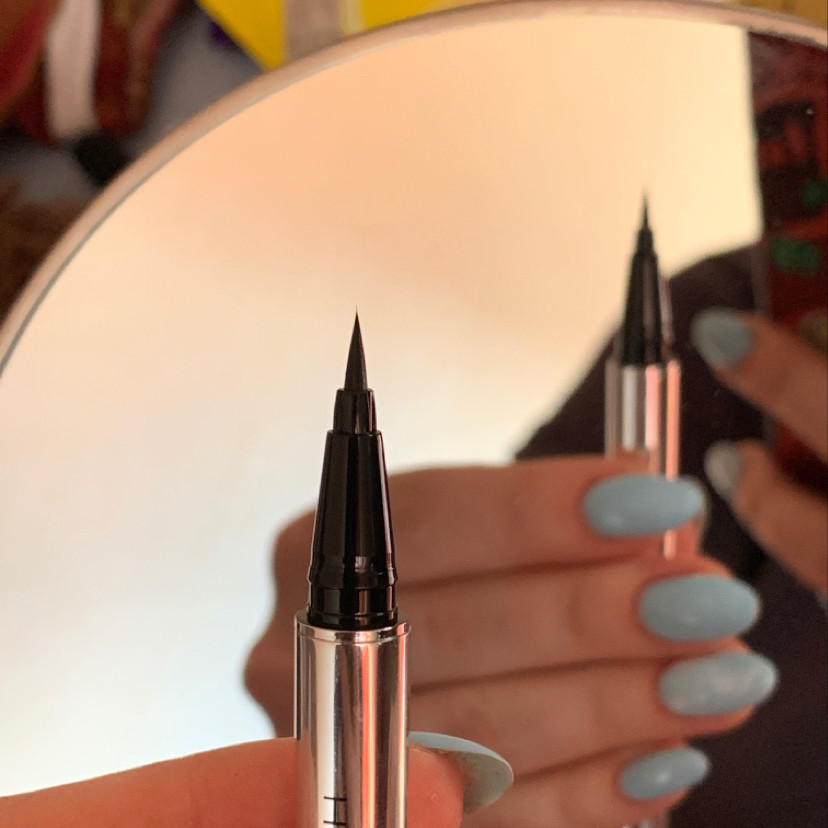 Для меня это идеальная подводка уже более пяти лет, не изменяю ей) Тонкий кончик и самый насыщенный черный цвет, с ней можно нарисовать стрелки любой толщины