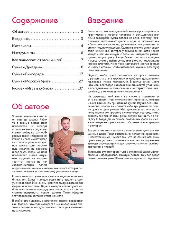 Новинка от известного мастера лоскутного шитья Петра Зырянова познакомит рукодельниц с техникой пошива сумок в стиле «пэчворк». В книге вас ждет 4 подробных мастер-класса по изготовлению сумок различных моделей. Выполнив все из них, вы попрактикуетесь и освоите множество необходимых приемов, которые помогут вам в дальнейшем шить сумки любой сложности самостоятельно. А ваш гардероб украсят новые модели: сумка с клапаном, сумка-шоппер, сумка на каждый день и рюкзак. Все описания сопровождаются подробными описаниями и пошаговыми фотографиями.