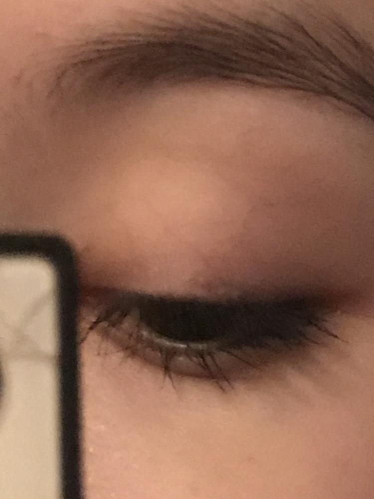 Тушь хорошая, прокрашивает замечательно. Но в течение дня может оставлять следы на верхнем веке и очень трудно смывается при снятии макияжа.