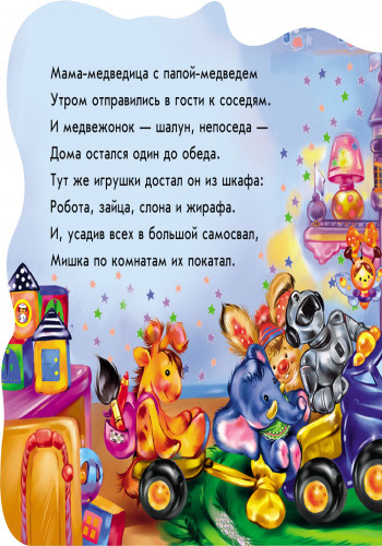 Очень хорошая книга! Дочке 1.3 - сама приносит и просит читать. Яркие картинки, интересные стихи, правильная подача - все на высоте. Купили всю серию, очень довольны. Изучать по этим книгам можно что угодно - для самых маленьких - животных, цвета, для деток постарше - вежливые слова. Доставка была вовремя, курьер вежливый, профессиональный. Спасибо большое за сервис!