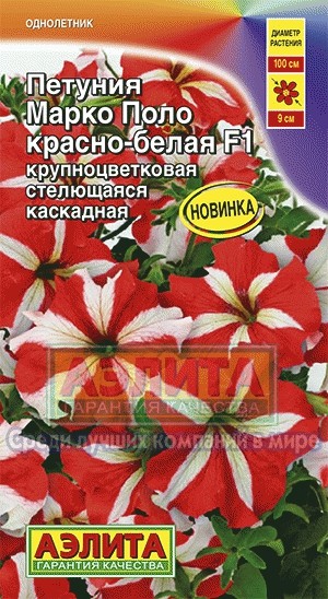 Аэлита Семена. Петуния «Марко Поло F1» красно-белая, 7 штВ данный момент этот товар отсутствует в продаже. Возможно, у нас найдется аналогичный или похожий товар здесь. Серия: Farao (Италия) По обилию цветения гибрид конкурирует с признанными чемпионами – сурфиниями. Формирует мощные, хорошо ветвящиеся растения. При выращивании в открытом грунте покрывает почву до 1 м в диаметре, при высоте 20 см. При выращивании в контейнерах их объём должен быть не менее 5 л на одно растение, а подкормки – еженедельными, что-бы гибрид показал себя во всей красе. |