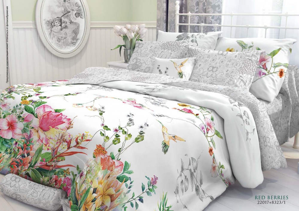 Комплект постельного белья «Red berries» изготовлен из ткани перкаль. Ткань "Перкаль" изготавливается из высококачественного хлопка, с использованием, тончайших нитей, что делает её удивительно нежной и гладкой, и при этом очень плотной.