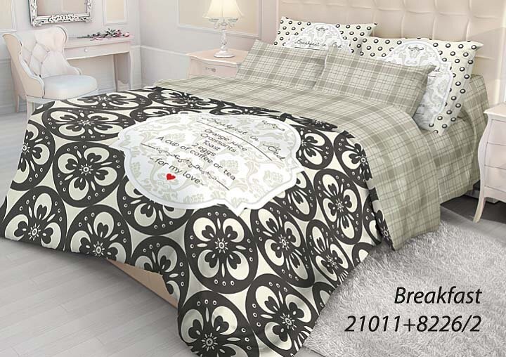 Комплект постельного белья «Breakfast» изготовлен из ранфорса (100% хлопок). Ранфорс - плотная, в тоже время мягкая ткань, похожая на бязь. Ранфорс отличается высокой прочностью и долговечностью, отлично держит форму, не линяет при стирке, не образует катышков и долго сохраняет свои потребительские качества.