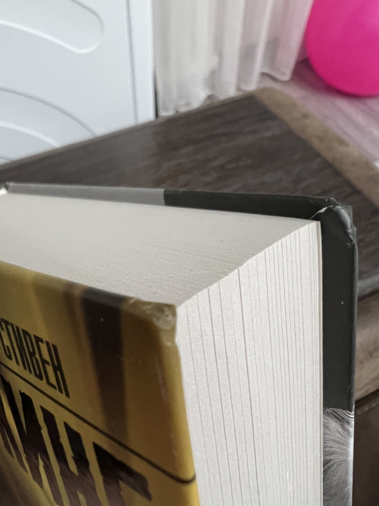 Всегда беру Кинга в этом издании, так вот эта пришла хуже по качеству. Совсем серая бумага, чересчур темная, обложка какая то пустотелая. Книги пришли без пупырки и все углы замялись.