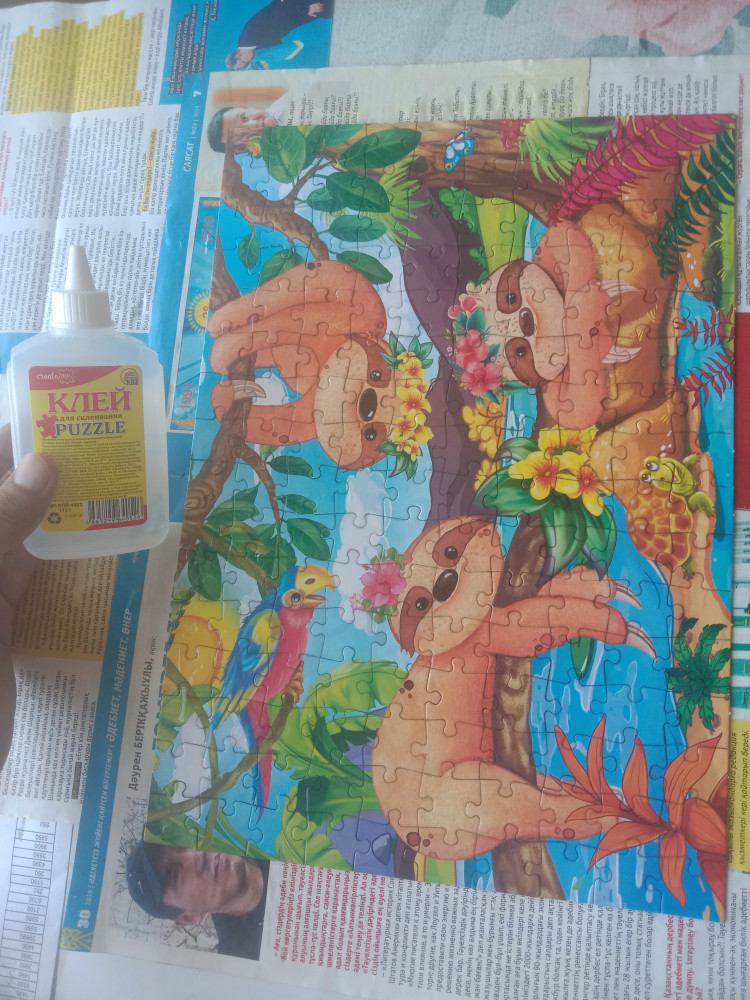 Клей понравился склоняли пазлы 1000 шт на два слоя. Немного осталось. Этого достаточно, чтоб перевернуть пазлы и спокойно приклеить к деревянной основе