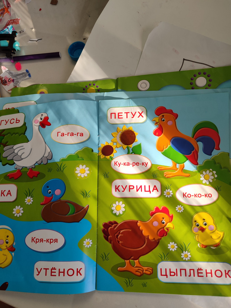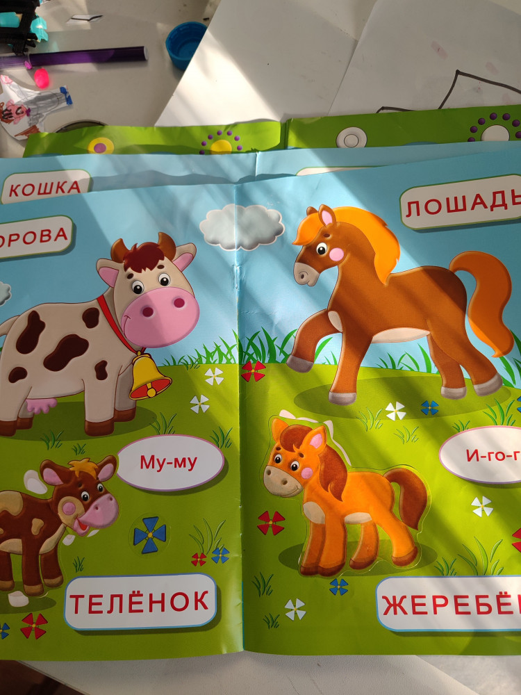 К сожалению, наклейки эти только звуки животных. Я думала, что самих животных надо будет клеить(