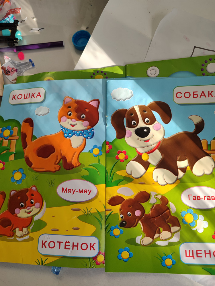 Домашние животные+19 крупные картинки легко отрываются клеятся детям нравится