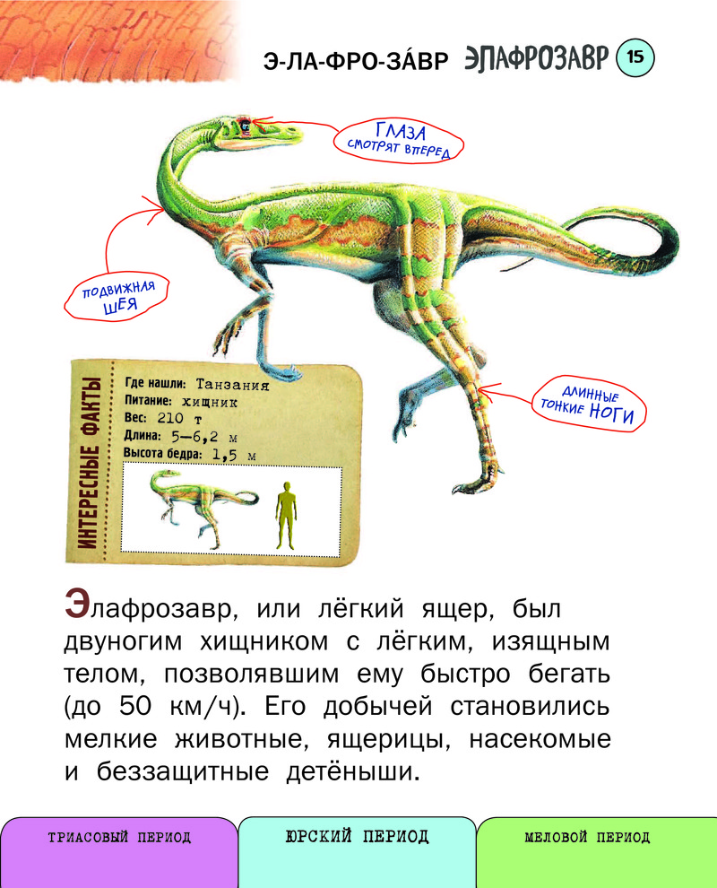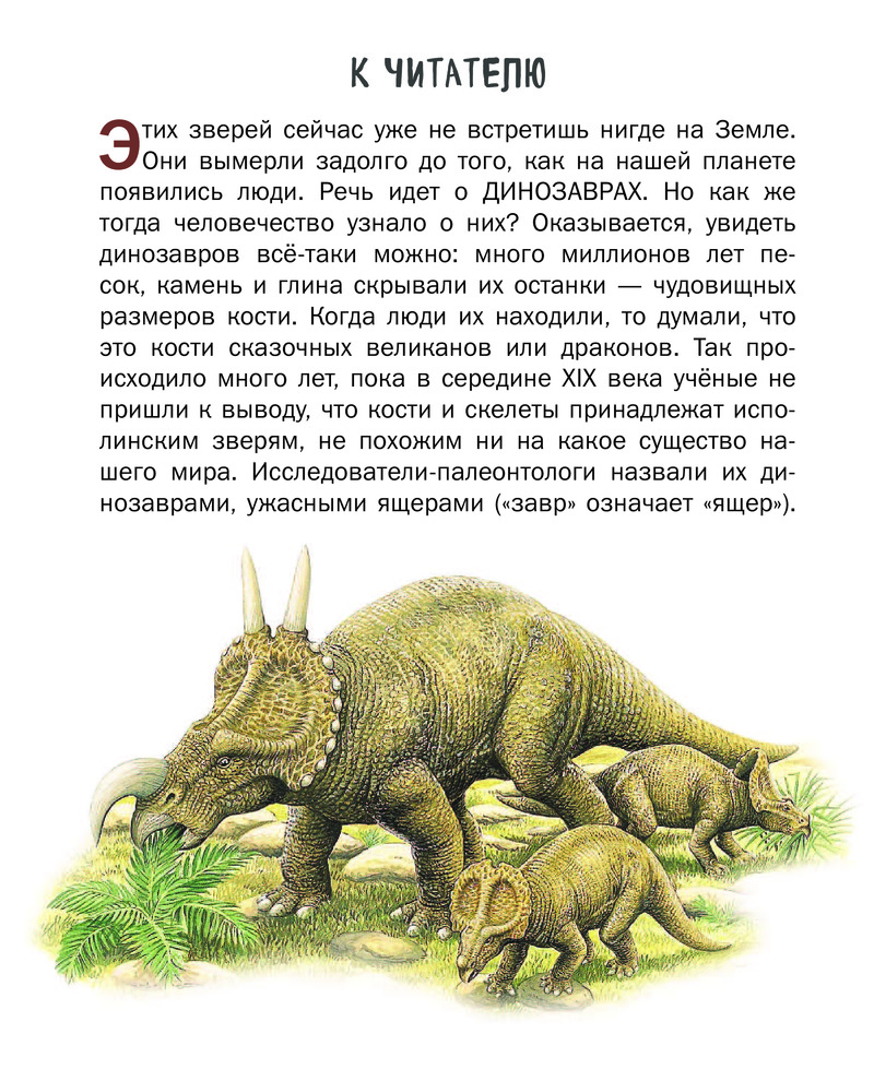 Отличная энциклопедия. Описания короткие, по существу. Изображения не пугающие. Купила на вырост сыну, пока в 2.10 интерес к динозаврам минимальный, оценит позже. Для самостоятельного чтения и изучения отлично подойдет, шрифт очень комфортный, крупный.