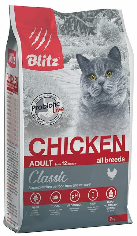 | Blitz Сухой корм для взрослых кошек c курицей «Chicken» (2 кг)+88 (бонусов)