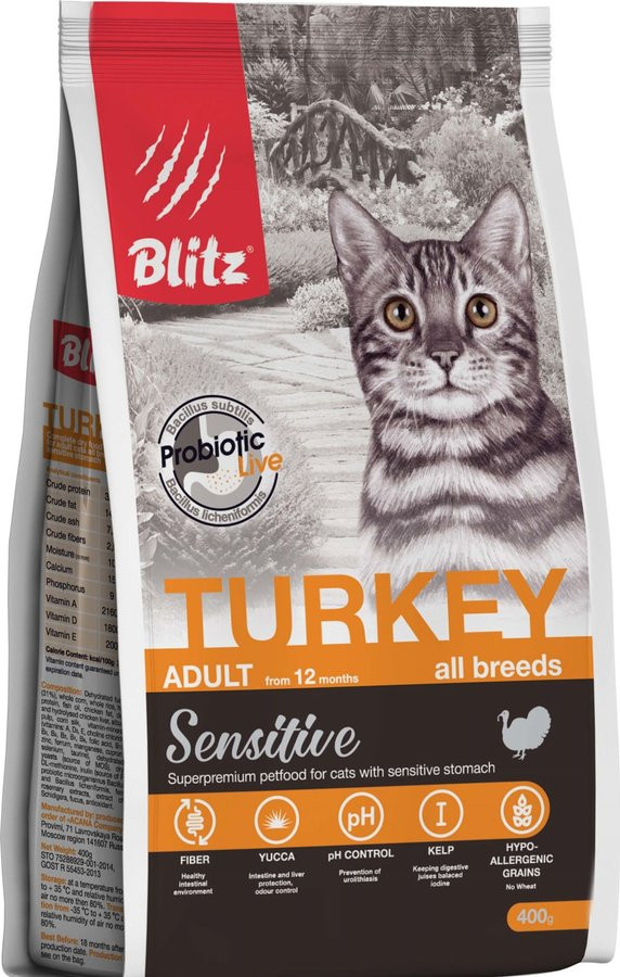 | Blitz Сухой корм для взрослых кошек c индейкой «Turkey»+33 (бонуса)