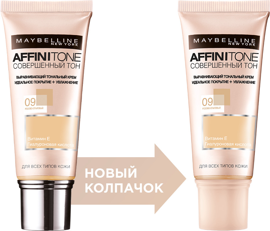 Maybelline New York Тональный крем для лица «Affinitone» выравнивающий и увлажняющий с гиалуроновой кислотой, оттенок 09 Розово-опаловый