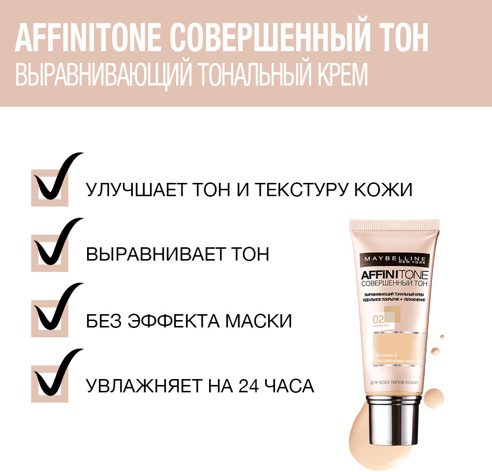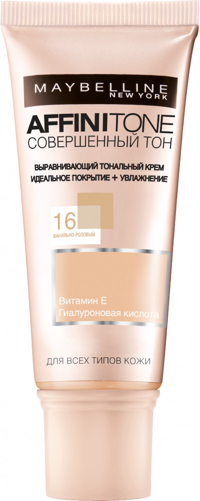 Maybelline New York Тональный крем для лица «Affinitone» выравнивающий и увлажняющий с гиалуроновой кислотой, оттенок 16 Ванильно-розовый