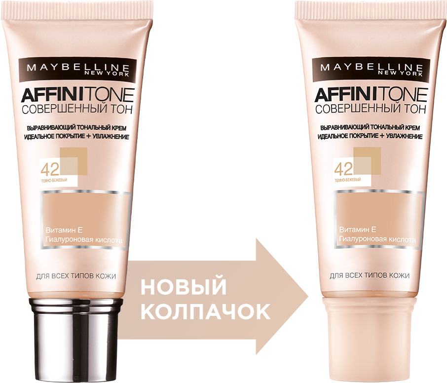 Maybelline New York Тональный крем для лица «Affinitone» выравнивающий и увлажняющий с гиалуроновой кислотой, оттенок 42 Темно-бежевый