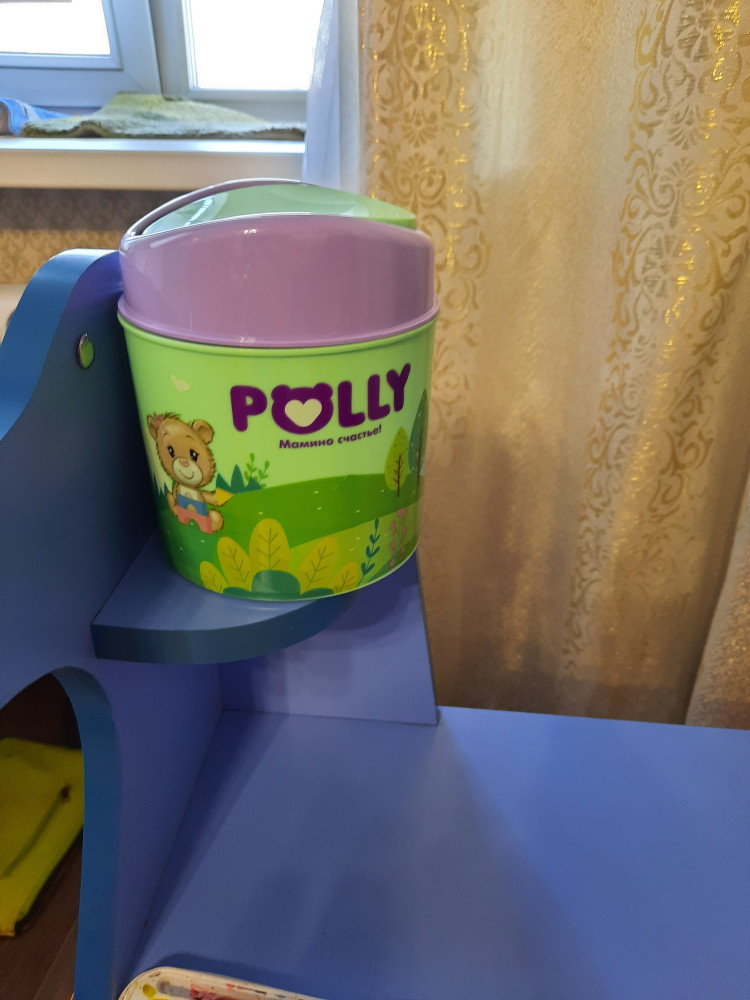 Хороший удобный контейнер, украшающий детскую комнату. Размер вполне подходит для мелкого мусора.
