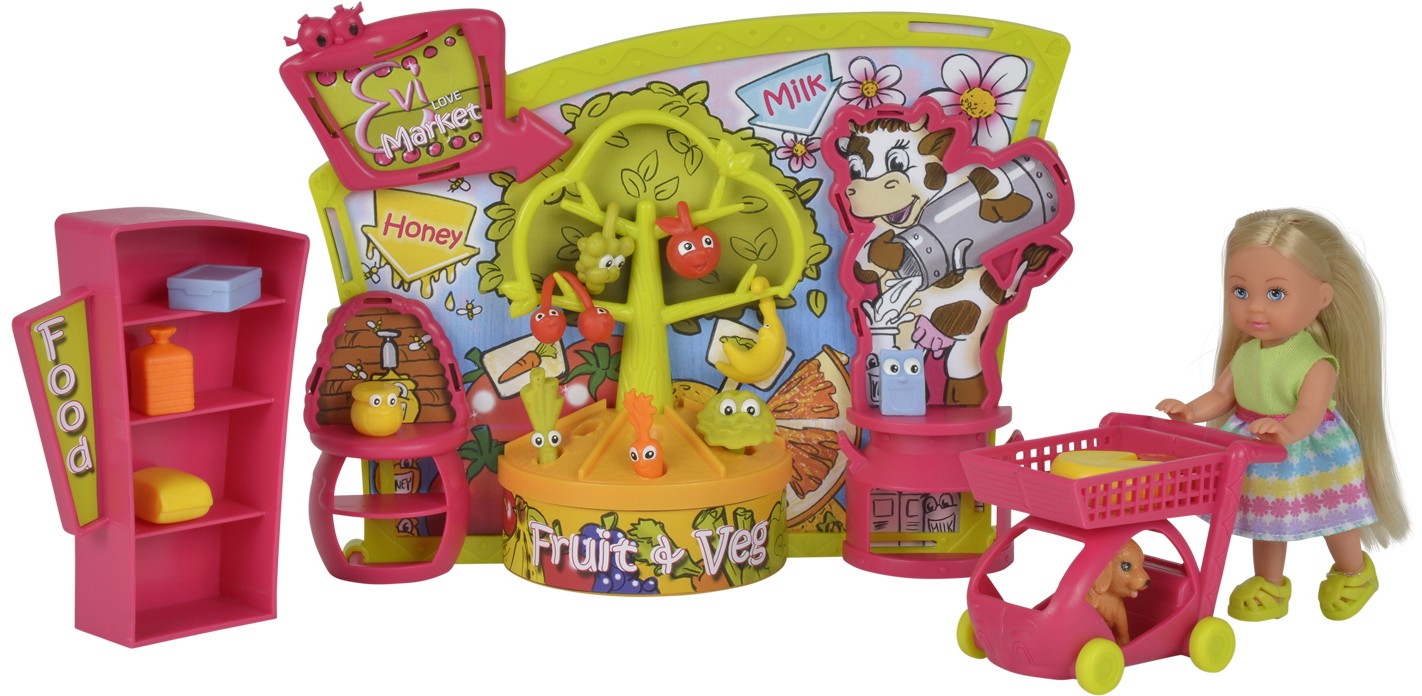 Simba Кукла Еви в супермаркетеВ данный момент этот товар отсутствует в продаже. Возможно, у нас найдется аналогичный или похожий товар здесь. Серия: Steffi Теперь любимая куколка девочек сможет отправиться за покупками, ведь в комплекте с Еви предусмотрены витрины, а также реалистичные копии продуктов. Поэтому малышка наполнит тележку на колесиках множеством вкусностей, а потом будет угощать ими любимого питомца – очаровательного щенка. |