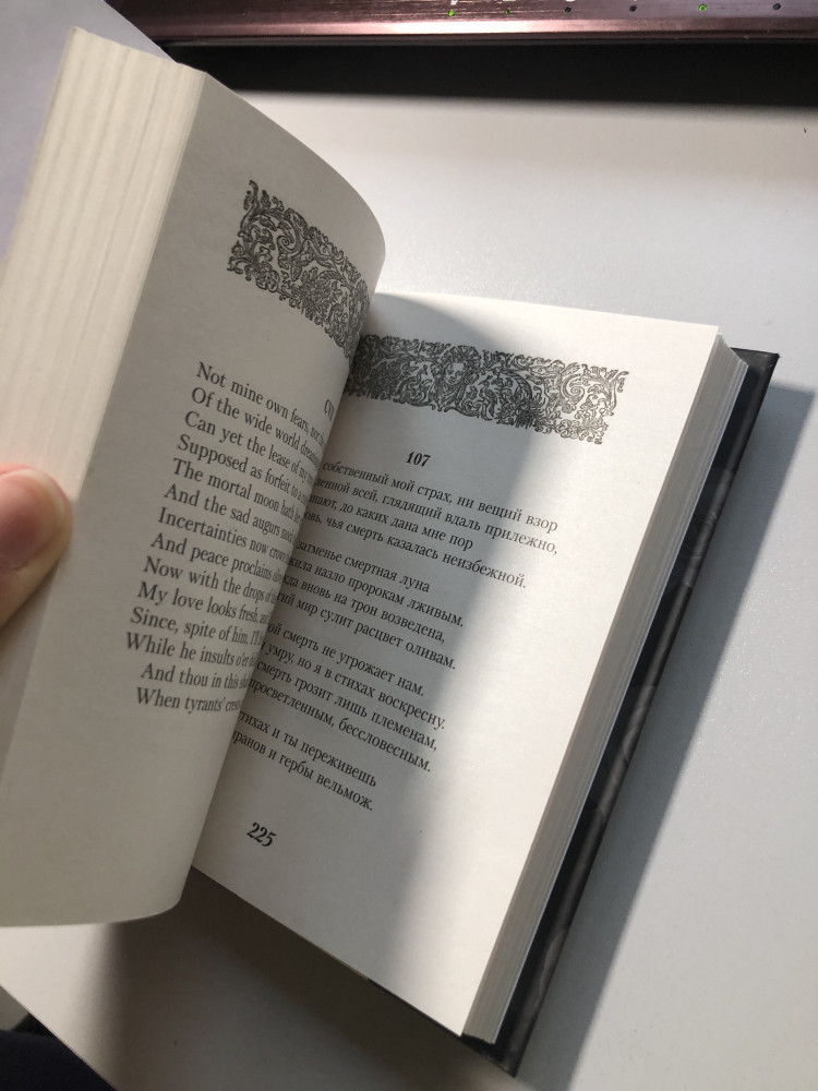 Для меня, как знатока английского языка очень интересно то, что некоторые сонеты напечатаны на английском языке. Очень интересно почитать в оригинале.