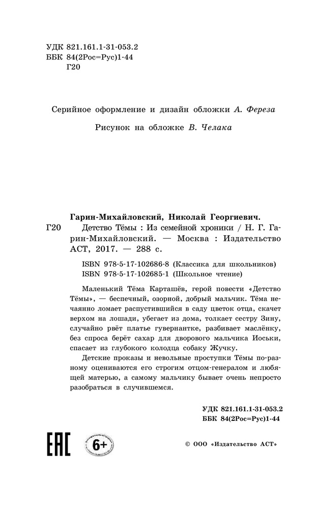 В данный момент этот товар отсутствует в продаже. Возможно, у нас найдется аналогичный или похожий товар здесь. Серия: Классика для школьников Николай Геогриевич Гарин-Михайловский (1852-1906) — русский писатель, инженер, путешественник.
