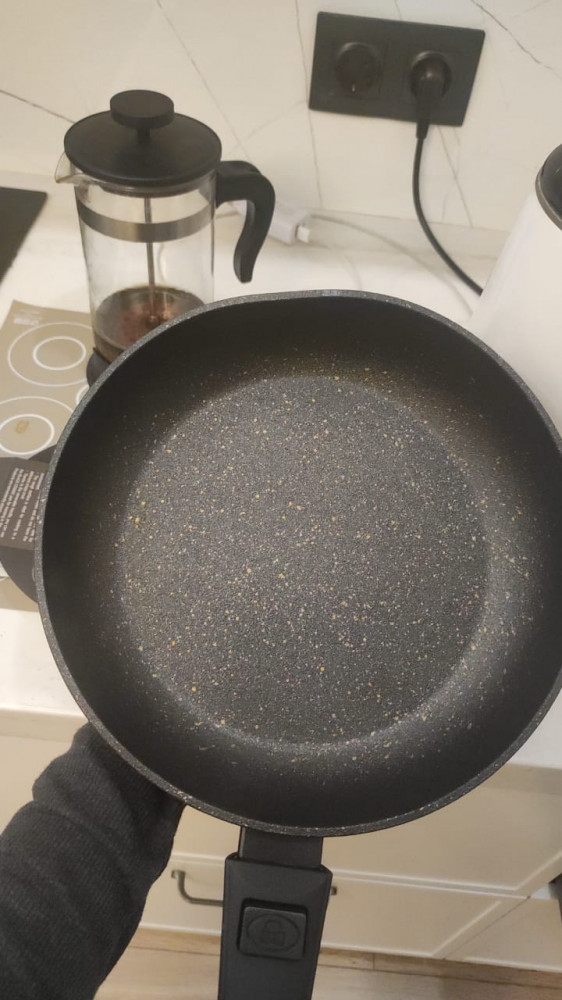 Сковорода супер, ручка снимается и одевается удобно и быстро. Сковорода легкая, ничего не подгорает. Ну а цена вообще, такого же типа сковороду брал за 17-20 0000 т., и сломалась съёмная ручка. Пункт выдачи вообще около дома, девушка там приветливая. Так что спасибо большое.