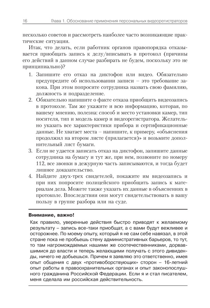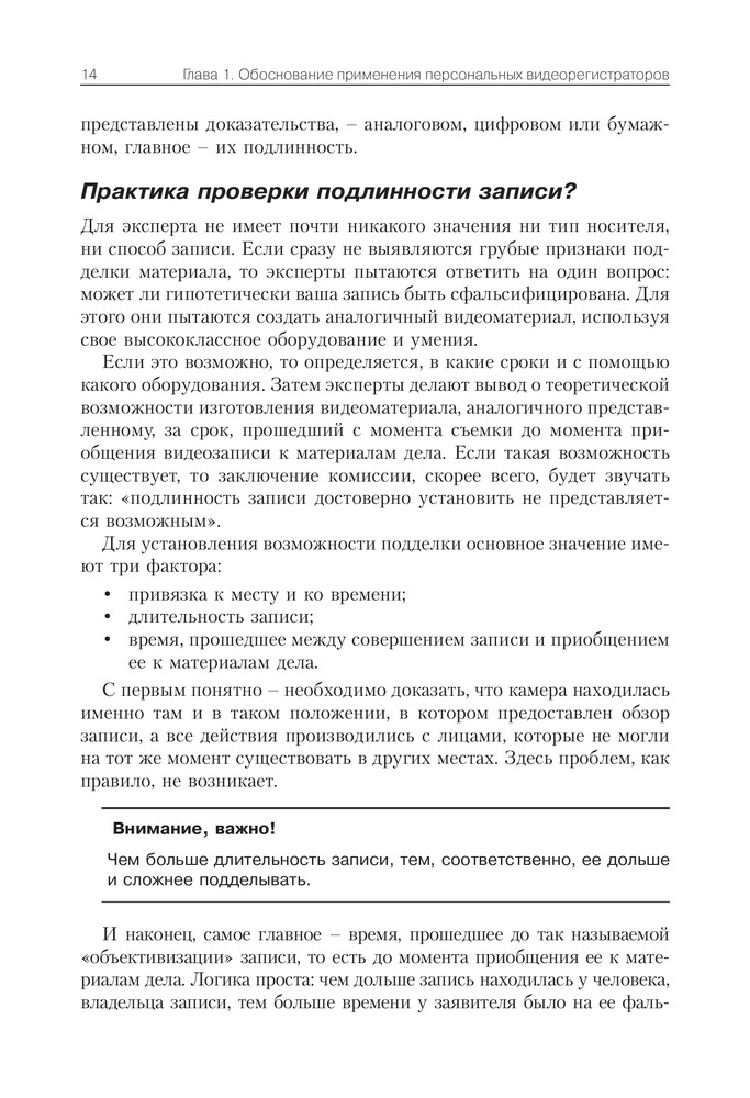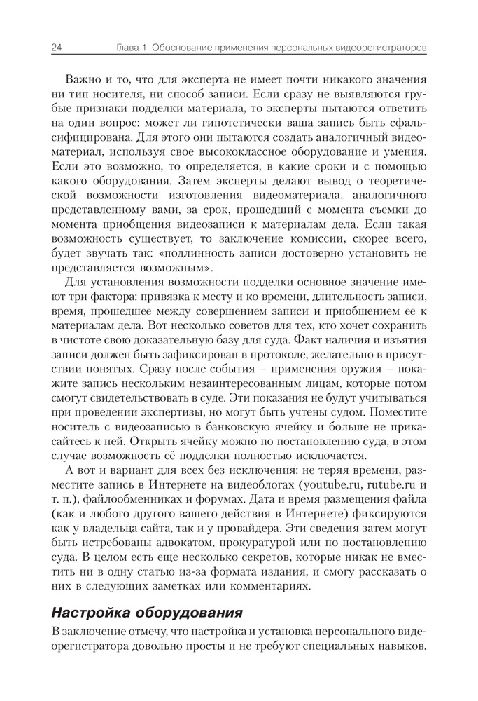 💳 Оплатить за товар можно при получении 🇰🇿 Есть бесплатная доставка по Казахстану от 1 дня 🎁 Копите бонусы с каждой покупки Первыми персональными видеорегистраторами (нательными камерами) оснащали полицейских, сотрудников бригад скорой помощи, спасателей, охотников лесного ведомства и прочих госслужащих. Сегодня это уже массовый продукт, доступный широкому кругу лиц, включая охотников и владельцев оружия. В книге подробно описываются современные, набирающие популярность электронные устройства видео- и аудиофиксации, продажи которых узаконены и динамично растут. Представлены технические данные и возможности устройств; анализируется их применение для сбора, сохранения и интерпретации доказательной базы. Вниманию читателя предложены практические примеры с обоснованием личной безопасности граждан в тех или иных ситуациях. |