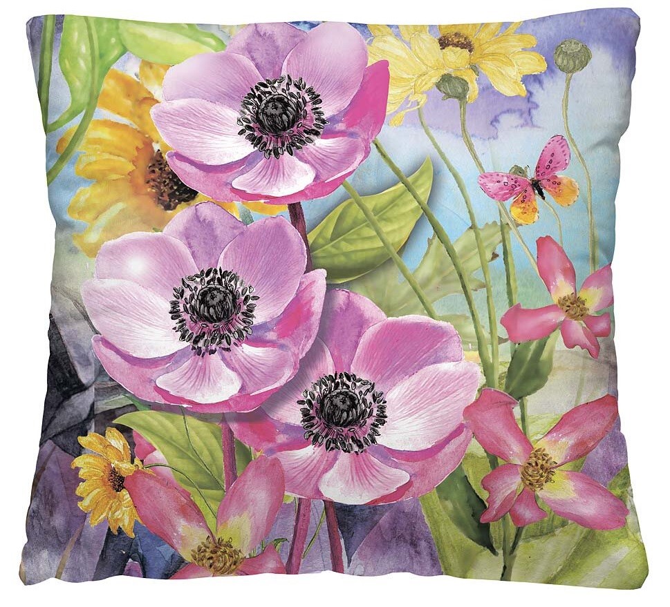 Мягкая, "пушистая" подушка, очень яркая, цветы даже кажутся выпуклыми. Изнаночная сторона однотонная, цвета, я бы сказала, насыщенного бордо. Она еще и в сумочке, очень аккуратно упакована. Рекомендую и на подарок, и чтобы себя побаловать.