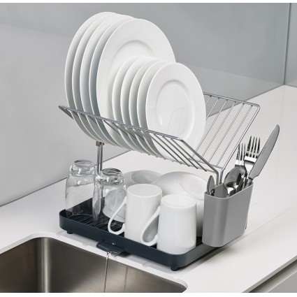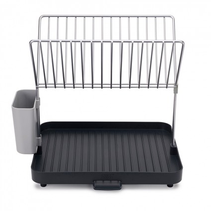 Joseph Joseph Сушилка для посуды и столовых приборов 2-уровневая со сливом «Y-rack»В данный момент этот товар отсутствует в продаже. Возможно, у нас найдется аналогичный или похожий товар здесь. Эргономичная сушилка для посуды, позволяющая сэкономить место на кухне. Двухуровневая конструкция состоит из устойчивого основания для кастрюль, сковородок и чашек и из верхней решетки, вмещающей до 15 тарелок и блюдец. Объемное отделение со сливом предоставляет возможность тщательно осушить до 4 комплектов посуды — и все это на минимальном участке пространства. Вода свободно стекает по желобкам, расположенным у основания под наклоном, а встроенный носик позволяет быстро сливать жидкость прямо в раковину. Нескользящие ножки обеспечивают устойчивость. Конструкция разбирается на части для легкой очистки. |