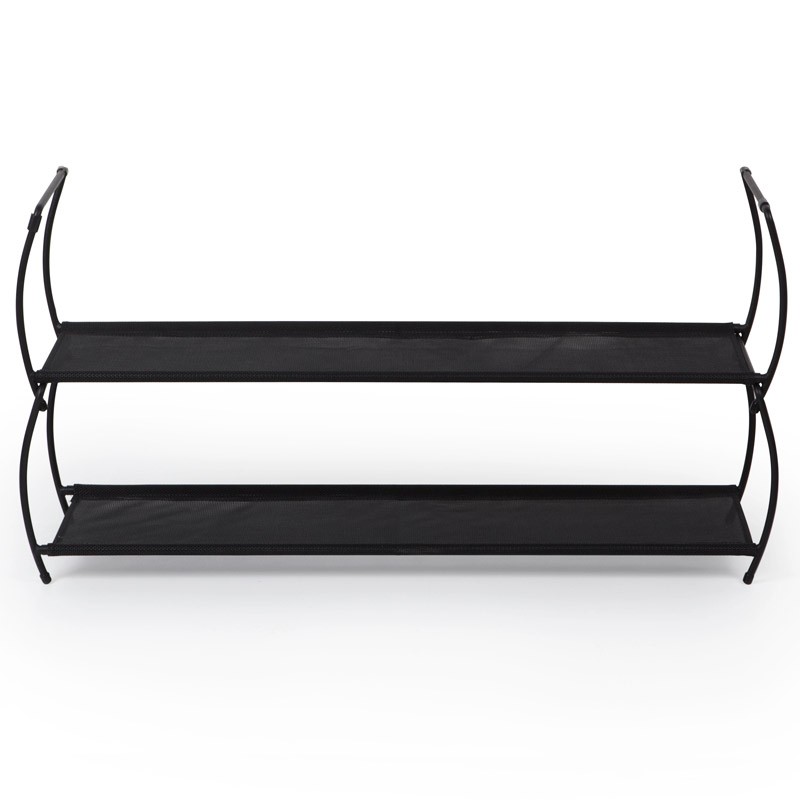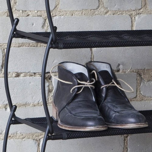 Полка понравилась. Красивая, лёгкая. Уточняю размеры (указаны на упаковке): длина 80,6, ширина (глубина) 23,2, высота 42,9 см. Сделано в КИТАЕ. ГАРАНТИЯ 5 ЛЕТ, что порадовало. Полки СЕТЧАТЫЕ (как москитная сетка). По мне бы лучше сплошная, гладкая поверхность - уход был бы проще, протёр тряпочкой и всё. Поэтому, обувь надо ставить только чистую, что не всегда выполнимо: пришли гости, и что, бежать мыть их обувь? Установила по прилагаемой схеме сборки по варианту "a" на петли, ножками-рожками вверх, поэтому под нижней полкой можно ещё ряд (третий) обуви поставить на пол. Для 3-4 пар на каждую полку в самый раз для сезонной обуви.
