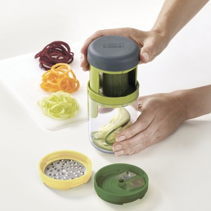 Joseph Joseph Терка спиралайзер «Spiro» с тремя лезвиями и контейнером для храненияВ данный момент этот товар отсутствует в продаже. Возможно, у нас найдется аналогичный или похожий товар здесь. Спиральная терка открывает новые возможности для тех, кто любит готовить. В комплект входит крупное и среднее лезвие, насадка для сыра и небольшой контейнер для сбора натертых овощей или фруктов. Легкая в использовании конструкция делает длинные ровные полосы при закручивании. Полученная овощная «лапша» подходит для украшения праздничных блюд или для приготовления различных салатов. Приятная на ощупь рукоятка не выскальзывает во время эксплуатации. Все элементы соединяются в одном контейнере и занимают минимум места в ящике стола. Можно мыть в верхней части посудомоечной машины. |