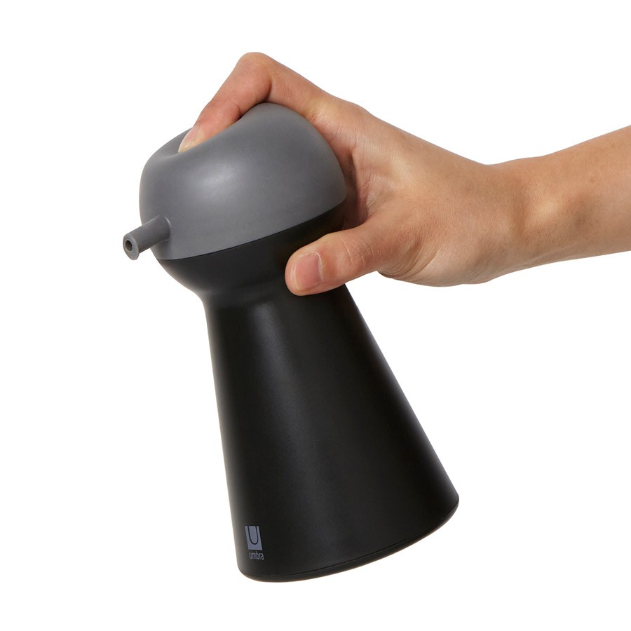 Umbra Диспенсер для мыла «Squish», чёрныйВ данный момент этот товар отсутствует в продаже. Возможно, у нас найдется аналогичный или похожий товар здесь. Диспенсер для жидкого мыла или санитайзера, похожий на героя фантастических фильмов. Широкое основание делает его устойчивым на скользой поверхности раковины. А резиновую шапочку дозатора удобно нажимать влажными руками, в процессе мытья посуды. |