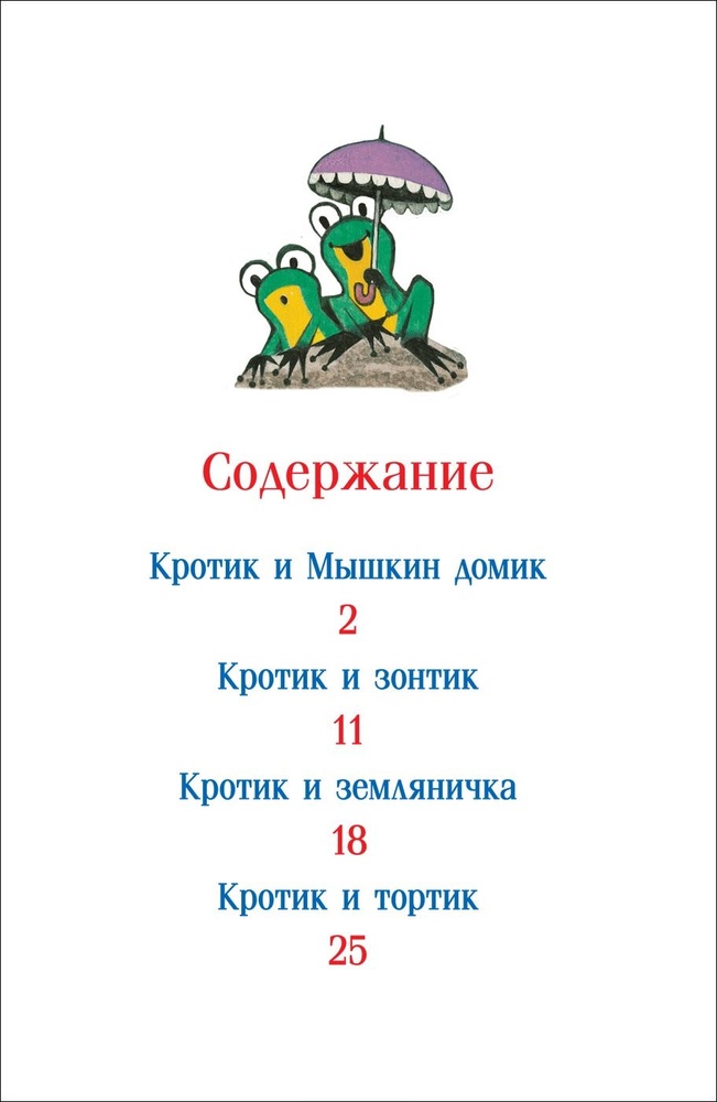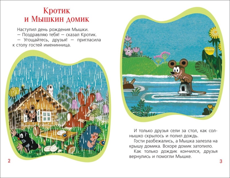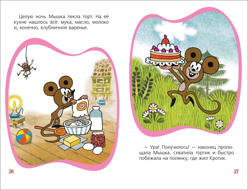 Хорошая книга, много ярких картинок. В сборник вошли 4 истории: Кротик и зонтик, Кротик и земляничка, Кротик и тортик, Кротик и мышкин домик. Все истории написаны в сокращении.
