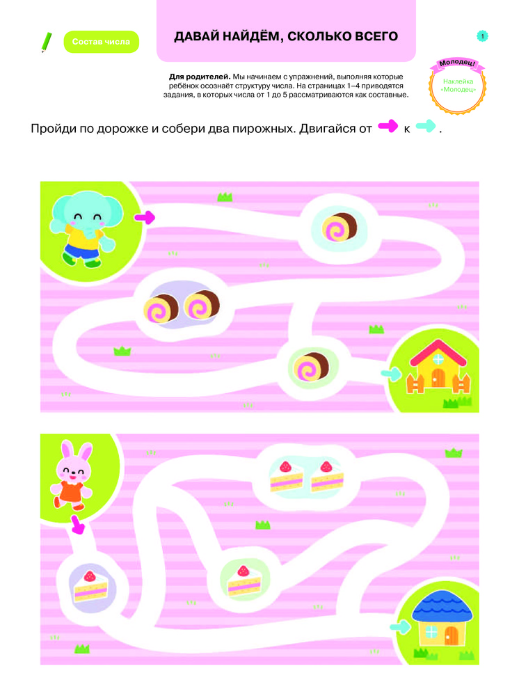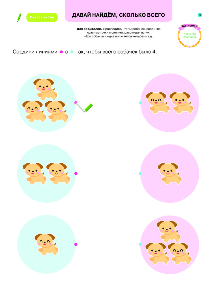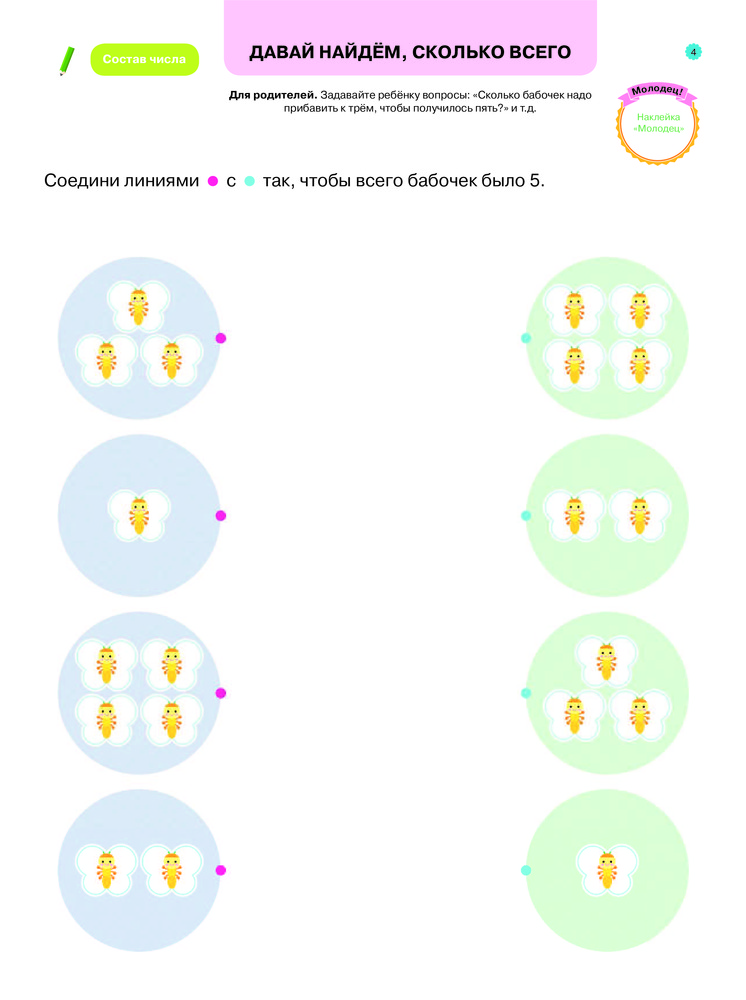 Замечательное пособие. Очень заинтересовало ребенка, который ни в какую не хочет считать. А ему, уже в этом году в школу. Читать умеет, поэтому сам читает задание и сам же его выполняет.
