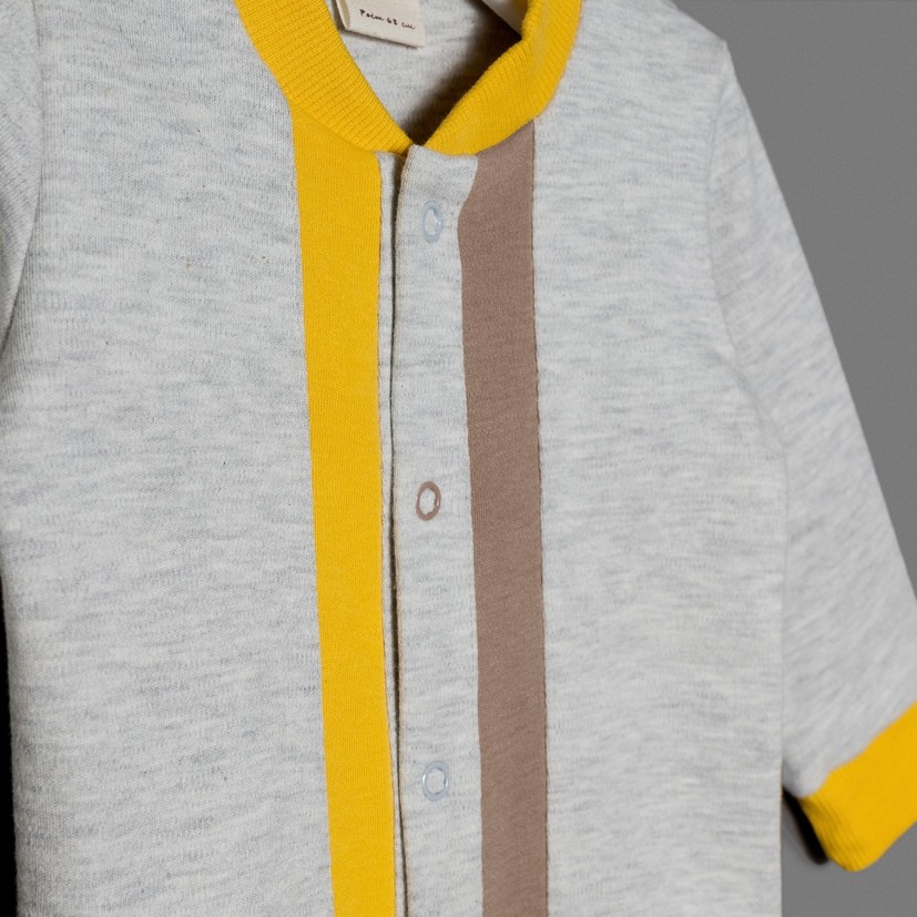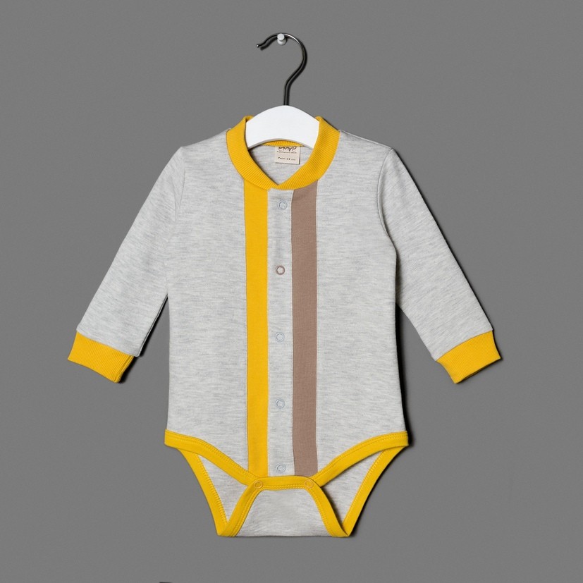 Модное боди с двумя полосками из контрастной ткани, имитирующими спортивный стиль. Спереди и снизу удобная застежка на кнопки, с помощью которой легко переодеть ребенка и сменить подгузник. Боди выполнено из натурального материала интерлок, не теряющего свойств после многочисленных стирок.