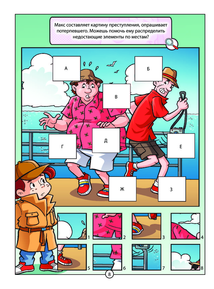 Дочка в 2 дня все разгадала, очень довольна! В книге 3 расследования. К сожалению, третью историю про кино мы брали в отдельной книжке с таким же оформлением, здесь оказался повтор. Сюжеты незамысловатые, но деткам 5-7 лет нравятся такие головоломки.