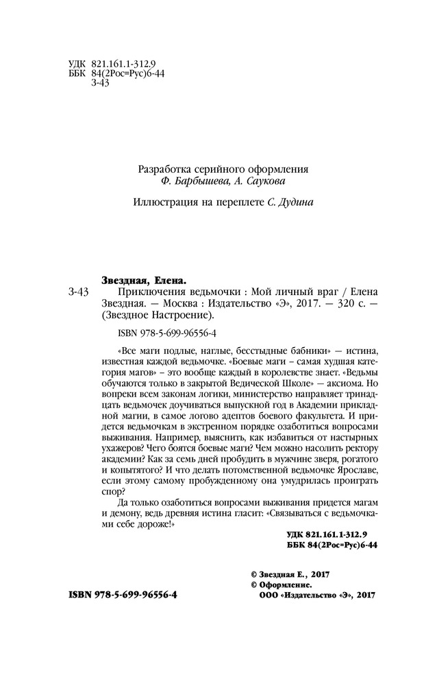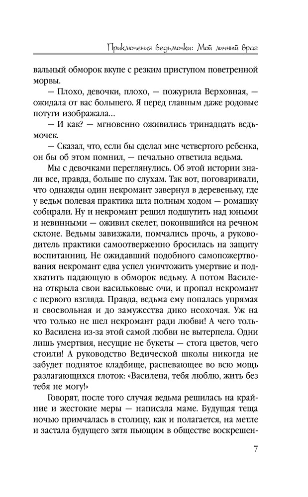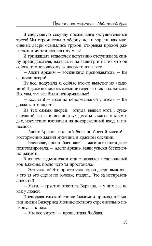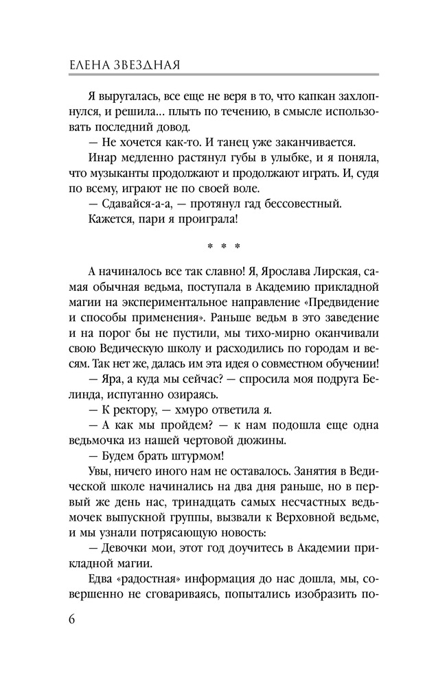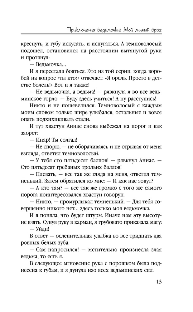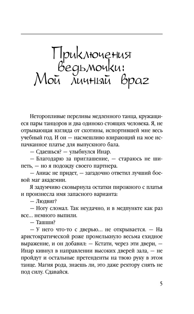 Приключения ведьмочки: Мой личный врагВ данный момент этот товар отсутствует в продаже. Возможно, у нас найдется аналогичный или похожий товар здесь. Серия: Звездное Настроение «Все маги подлые, наглые, бесстыдные бабники» — истина, известная каждой ведьмочке. «Боевые маги — самая худшая категория магов» — это вообще каждый в королевстве знает. «Ведьмы обучаются только в закрытой Ведической Школе» — аксиома. Но вопреки всем законам логики, министерство направляет тринадцать ведьмочек доучиваться выпускной год в Академии прикладной магии, в самое логово адептов боевого факультета. И придется ведьмочкам в экстренном порядке озаботиться вопросами выживания. Например, выяснить, как избавиться от настырных ухажеров? Чего боятся боевые маги? Чем можно насолить ректору академии? Как за семь дней пробудить в мужчине зверя, рогатого и копытятого? И что делать потомственной ведьмочке Ярославе, если этому самому пробужденному она умудрилась проиграть спор? |