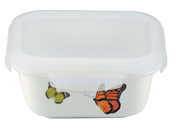 Квадратный контейнер с крышкой Attica Butterfly подходит для мытья в посудомоечной машине, хранения в холодильной и морозильных камерах. Отличная альтернатива пластиковым емкостям для хранения еды.