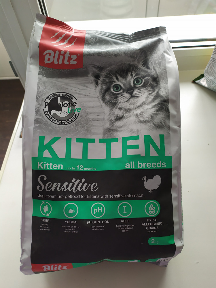 Корм хороший, чувствуется что нет ароматизаторов, котёнок корм кушает как здесь написали «без фанатизма». Состав хороший, напрягает только кукуруза в составе. Радует процент белка. Нет тошнотворного запаха