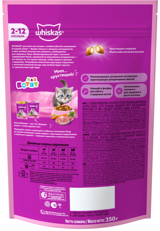 Whiskas Сухой корм для котят с молочной начинкой, индейкой и морковью «Вкусные подушечки»вкусный подушечки мелкий размер для котят подходит взрослым В данный момент этот товар отсутствует в продаже. Возможно, у нас найдется аналогичный или похожий товар здесь. Условия хранения товара: температурный режим от −10 до +25°С. |
