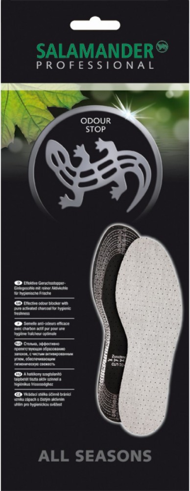 Salamander Professional Стельки против запаха Odour StopВ данный момент этот товар отсутствует в продаже. Возможно, у нас найдется аналогичный или похожий товар здесь. Эффективная стелька с активированным углем для свежести в обуви. Верхний слой стельки из мягкого и влагопоглащающего хлопка прекрасно впитывает влагу. Нижний слой из мягкого пеноматериала с активированным углём обеспечивает оптимальную амортизацию. Высокоэффективный активированный уголь абсорбирует неприятный запах. Перфорированный профиль обеспечивает великолепную циркуляцию воздуха в обуви. |