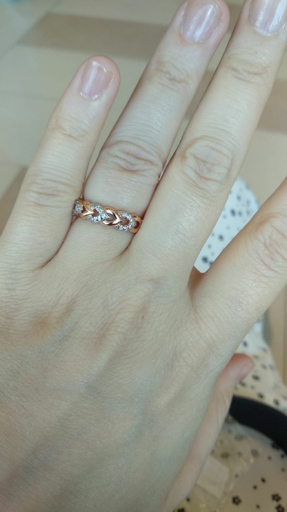 Милое, нежное колечко. Не тонкое, но и не толстое по ширине. Смотрится достойно.