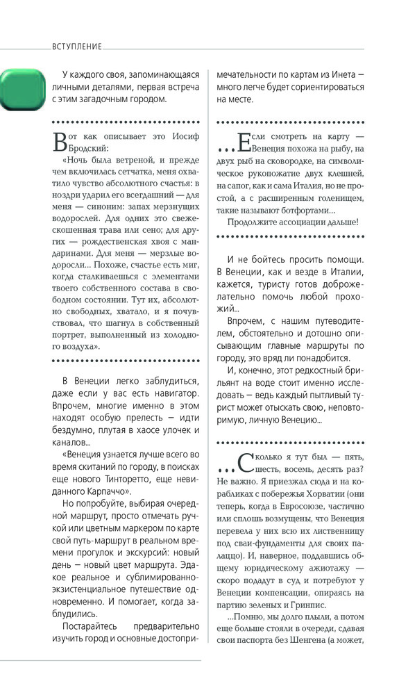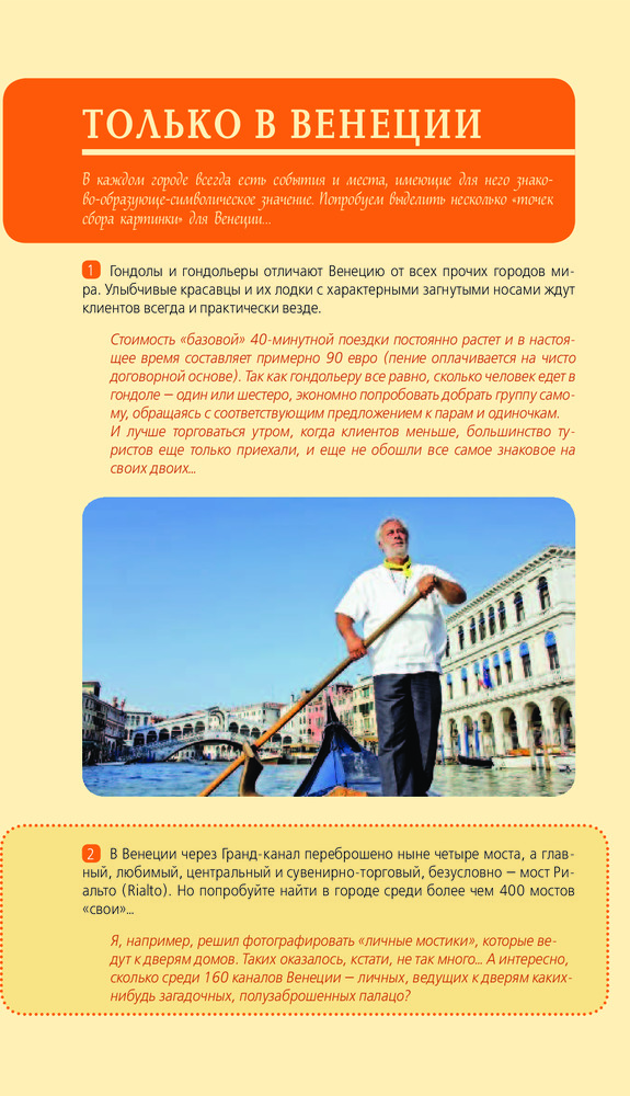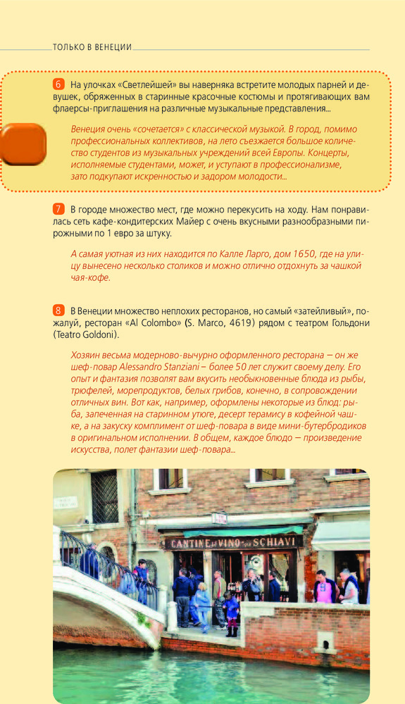 Перед вами новый, проверенный и дополненный оранжевый путеводитель по Венеции! Светлейшая, как называли ее венецианцы, или Царица морей, на протяжении тысячелетия была сильным и независимым государством, которое подарило миру первое казино, систему бухучета и сотни произведений искусства. Вас ждут разнообразные маршруты прогулок по городу на воде с самыми любопытными ремарками автора — как всегда нестандартно и с чувством юмора. В путеводителе есть вложенная подробная карта, и все достопримечательности из книги имеют ссылку на нужный квадрат этой карты — больше не заблудитесь. А также разделы с советами, куда пойти в дождь, что можно сделать совершенно бесплатно, и многими другими.