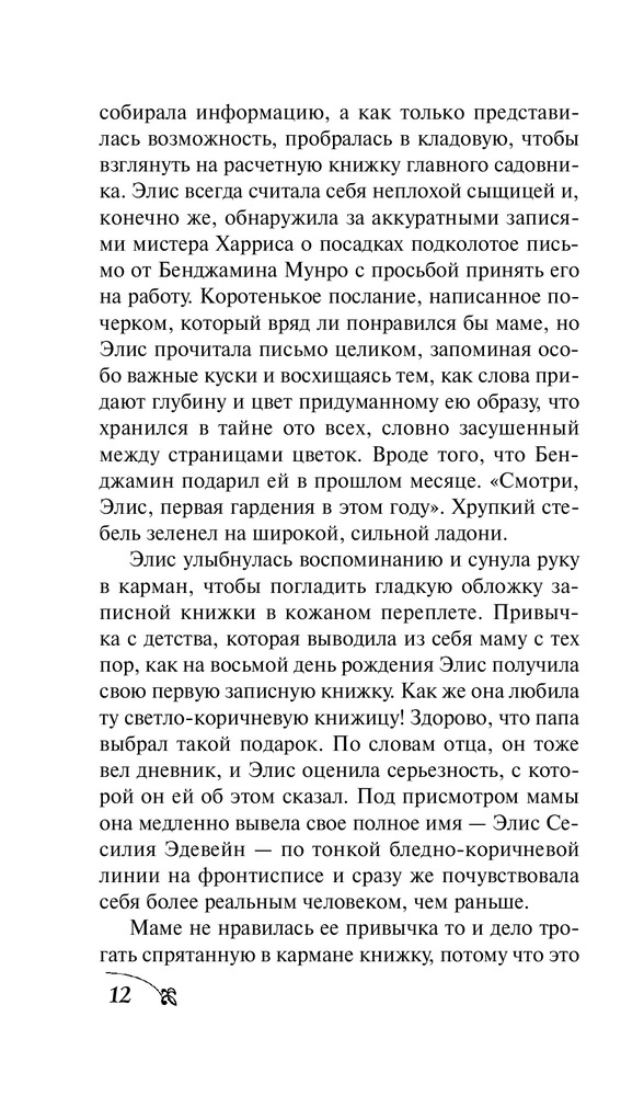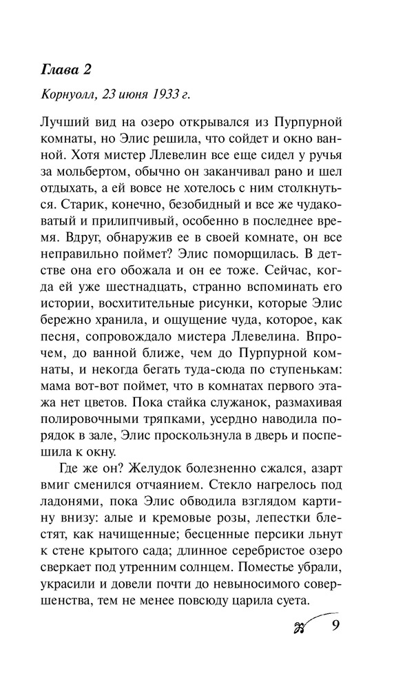 Я нашла для себя ещё одного любимого для себя автора. Кейт Мортон обладает какой-то магией. Ее романы очень уютные. Герои раскрыты настолько, что не остаётся какой-то недосказанности. Каждая мелочь прописана, будь то описание дома или сада. Ощущение, что я нахожусь на сцене действия и воочию наблюдаю. Проникаюсь к каждому герою, и после прочтения всегда остаётся приятное послевкусие. Переплёт мягкий, и странички немного тонковаты, но я все равно рада, что эта книга теперь в моей библиотеке. Любителям разгадывать семейные тайны и разгадывать человеческие души, советую. Не устаю благодарить Флип за большой выбор.