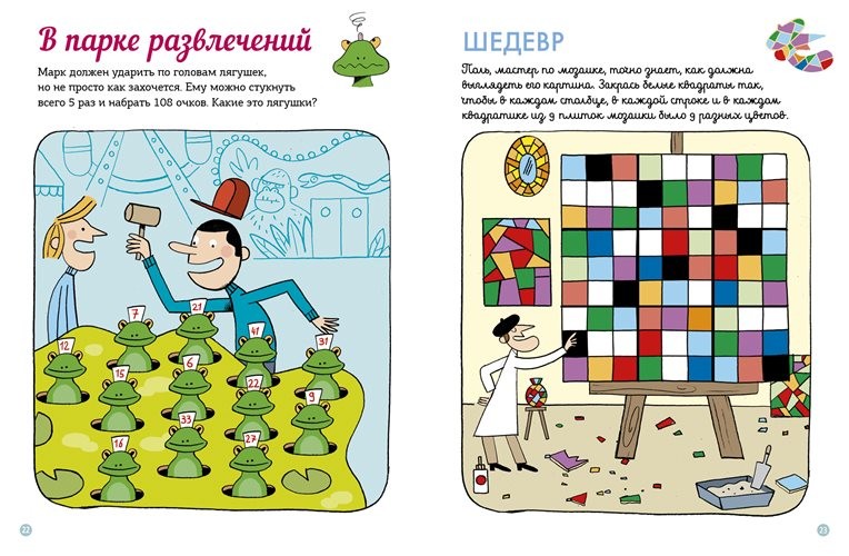 Хотел взять для себя, но задачки оказались для детей 8-13 лет. А так очень красочные иллюстрации и интересный дизайн. Младшему брату очень понравилась.