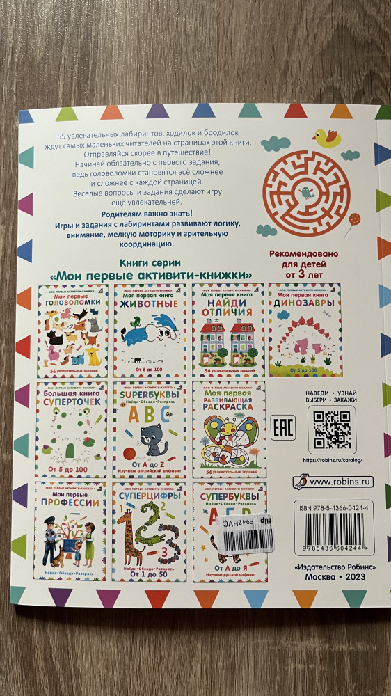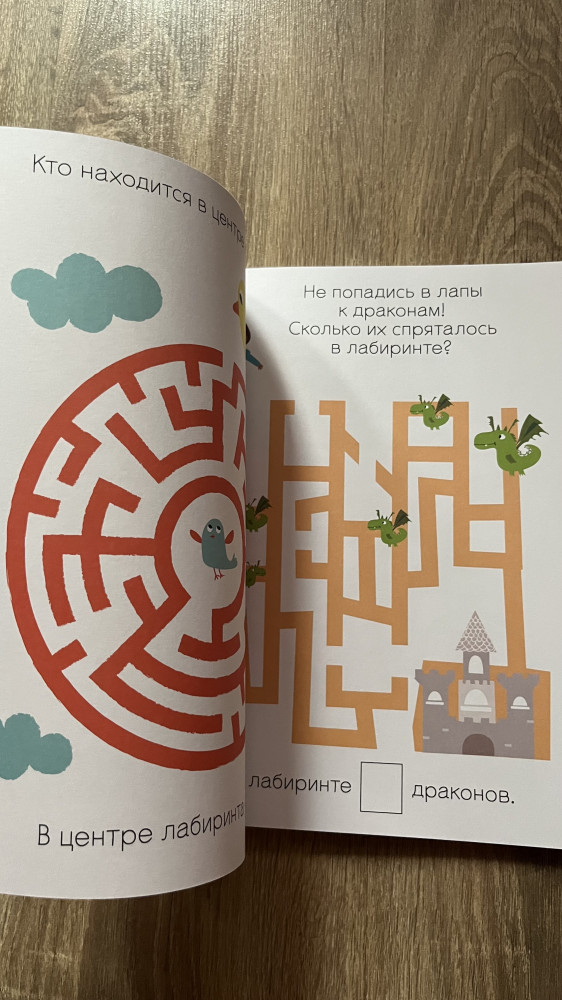 Очень понравилась книга! Ребенку 3,5 года! С удовольствием прошел все лабиринты! Яркая печать! По ходу можно придумывать разные истории про героев, которые должны пройти испытания!