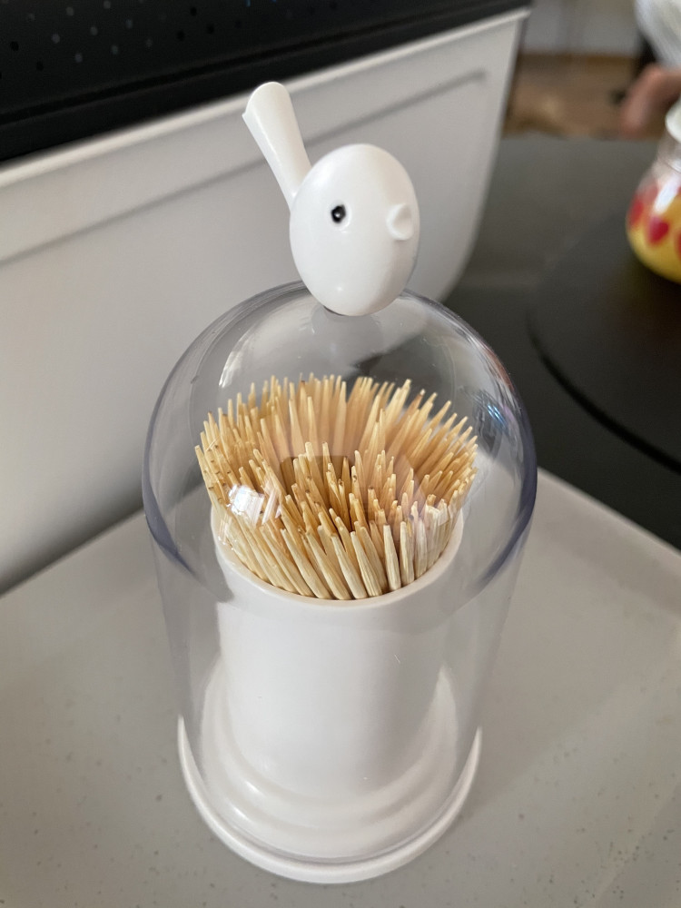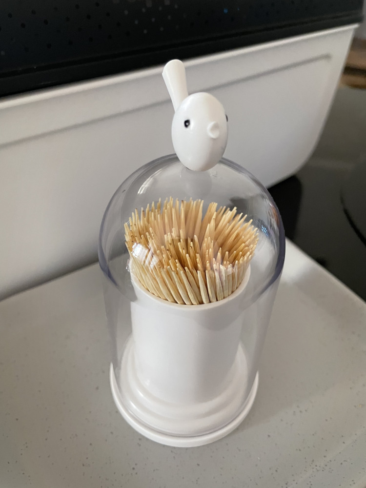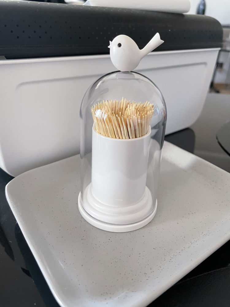 Давно хотела такой контейнер для зубочисток. Очень довольна покупкой. Выполнен качественно. Удобно поднимать крышку за птичку, ничего не марается. Спасибо Flip