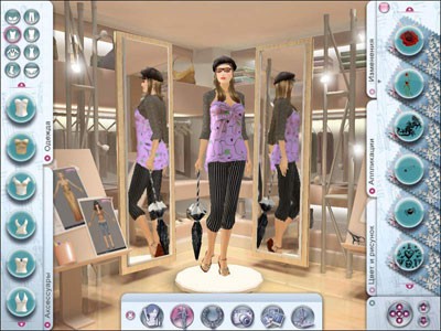 Эта игра мне очень понравилась. В принципе, суть осталась той же – героине приходится создавать одежду, макияж, украшения, но плюс к этому еще и делать фотографии. Мне понравилось то, что не даются узкие рамки, то есть, ты сама можешь выбрать себе заказ и последовательность его исполнения. Также, необходимо отметить, то, что в этой части графика намного лучше, да и гардероб увеличился в разы. Кстати, один из героев до боли напоминает Бреда Питта:). Примечательно, что если ты не хочешь создавать наряды, которые даются в задании, то можешь выбрать другую опцию и давать волю фантазии