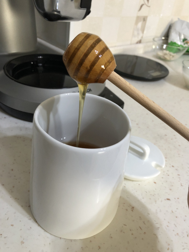 Очень большая и вместительная, у меда наконец-то есть своя емкость с крышкой и веретеном.