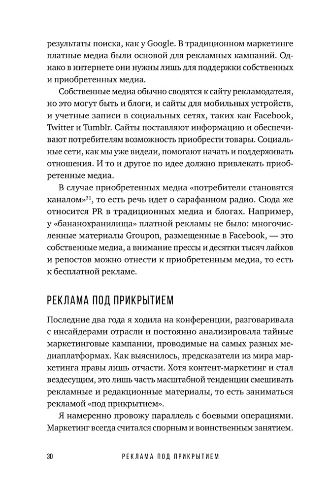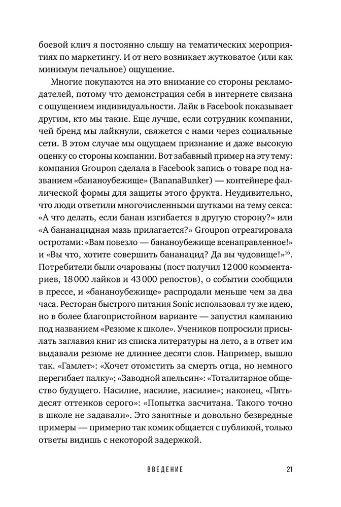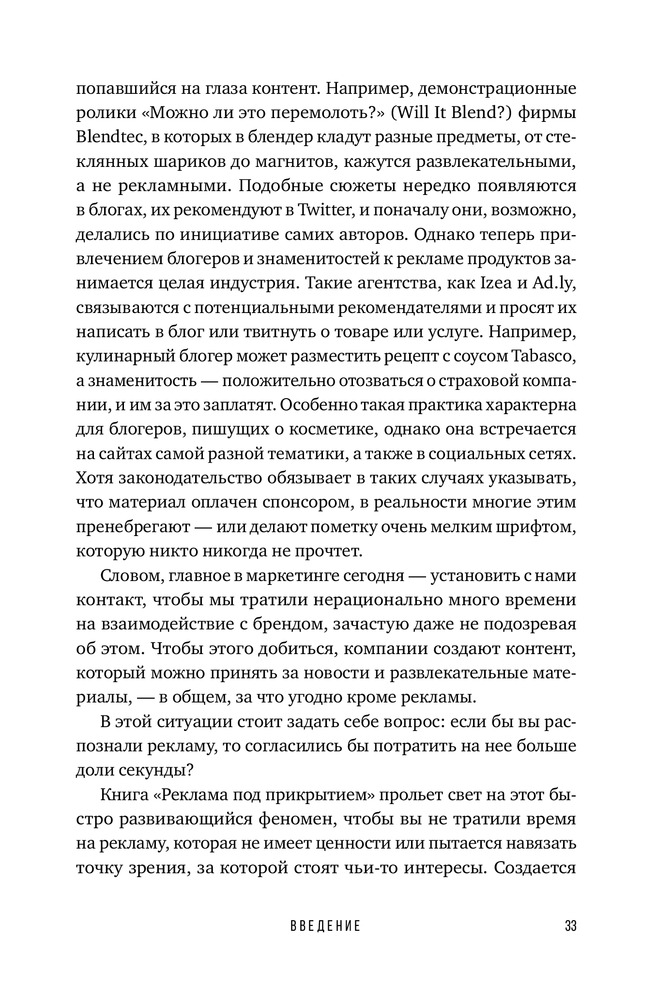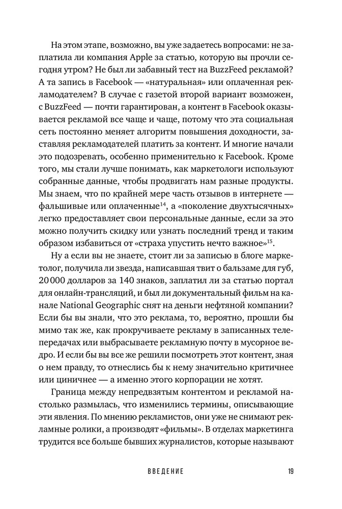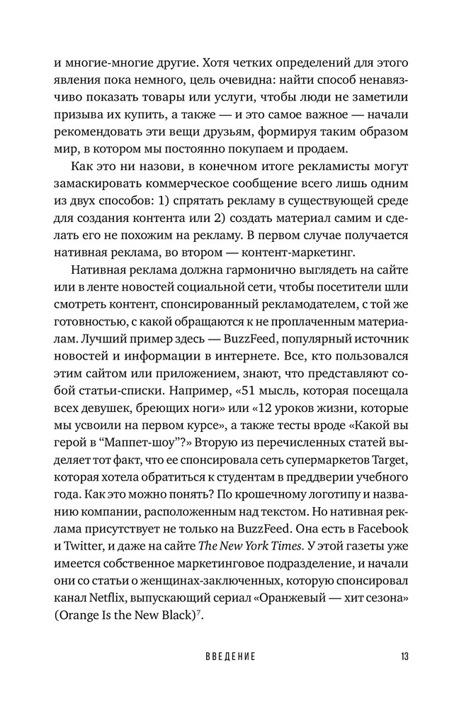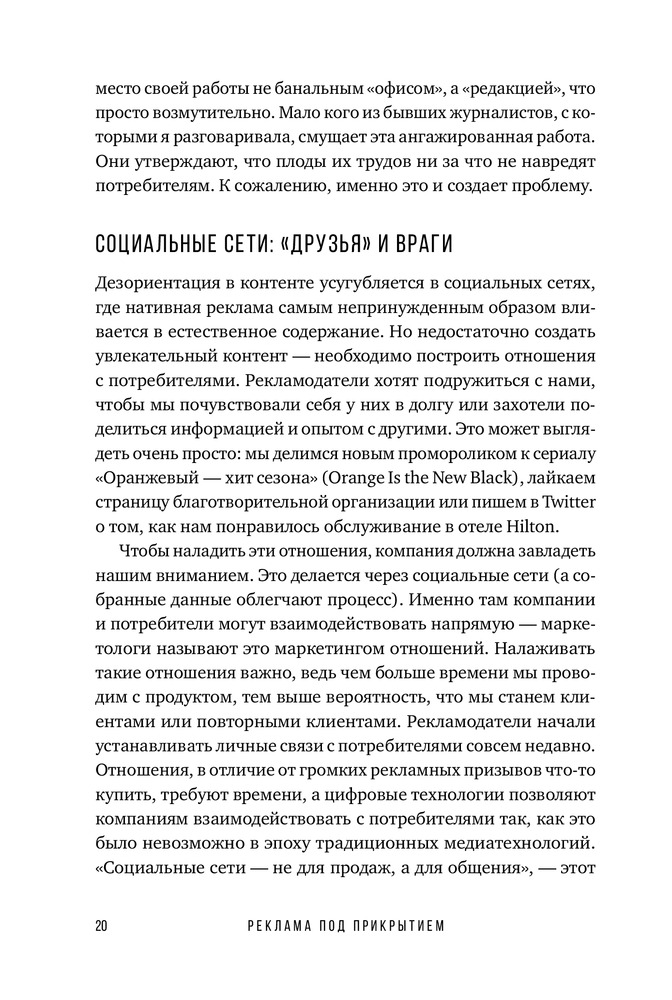 Реклама под прикрытием: Нативная реклама, контент-маркетинг и тайный мир продвижения в интернетеВ данный момент этот товар отсутствует в продаже. Возможно, у нас найдется аналогичный или похожий товар здесь. Серия: Маркетинг Это мы продвигаем бренд, мы побуждаем друзей и родственников посмотреть видео, купить товар или лайкнуть страницу. А поскольку рекомендация поступает из проверенного и надежного источника, друзья и родственники с большей вероятностью обратят на нее внимание. Так выглядит сарафанный маркетинг, основа основ в новой экосистеме скрытой цифровой рекламы. |