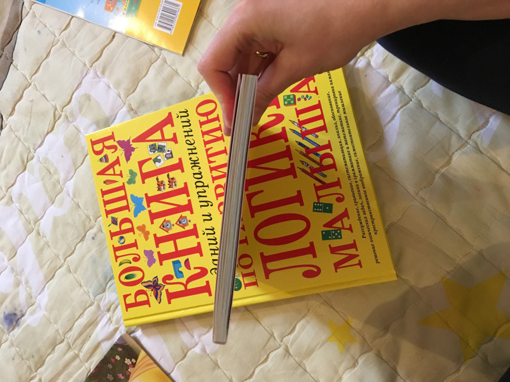 Книжка как уже все и говорили маленького размера, почему я не посмотрела 🙄, но это ее не главный минус, она склеена так,чтобы ее открыть для удобного рисования,ее надо почти что поломать в этом месте, ребёнок сам не сможет, по мне цена завышена.