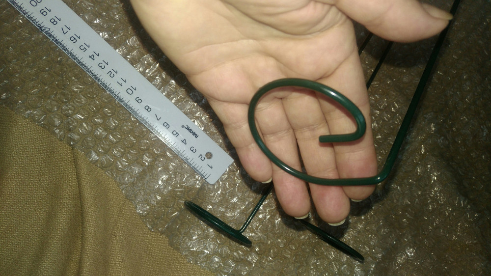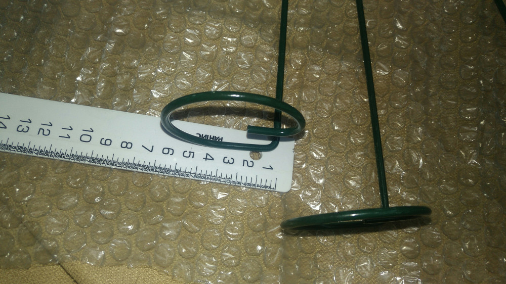 Описание не точное, заказала не читая комментарии. Длинная металлическая спица с завитушкой на конце, диаметром с ладонь. Рассчитана для орхидей, вазможно. Мне не подошла, возврат не делала, т.к. цена небольшая. Буду модернизировать плоскогубцами)
